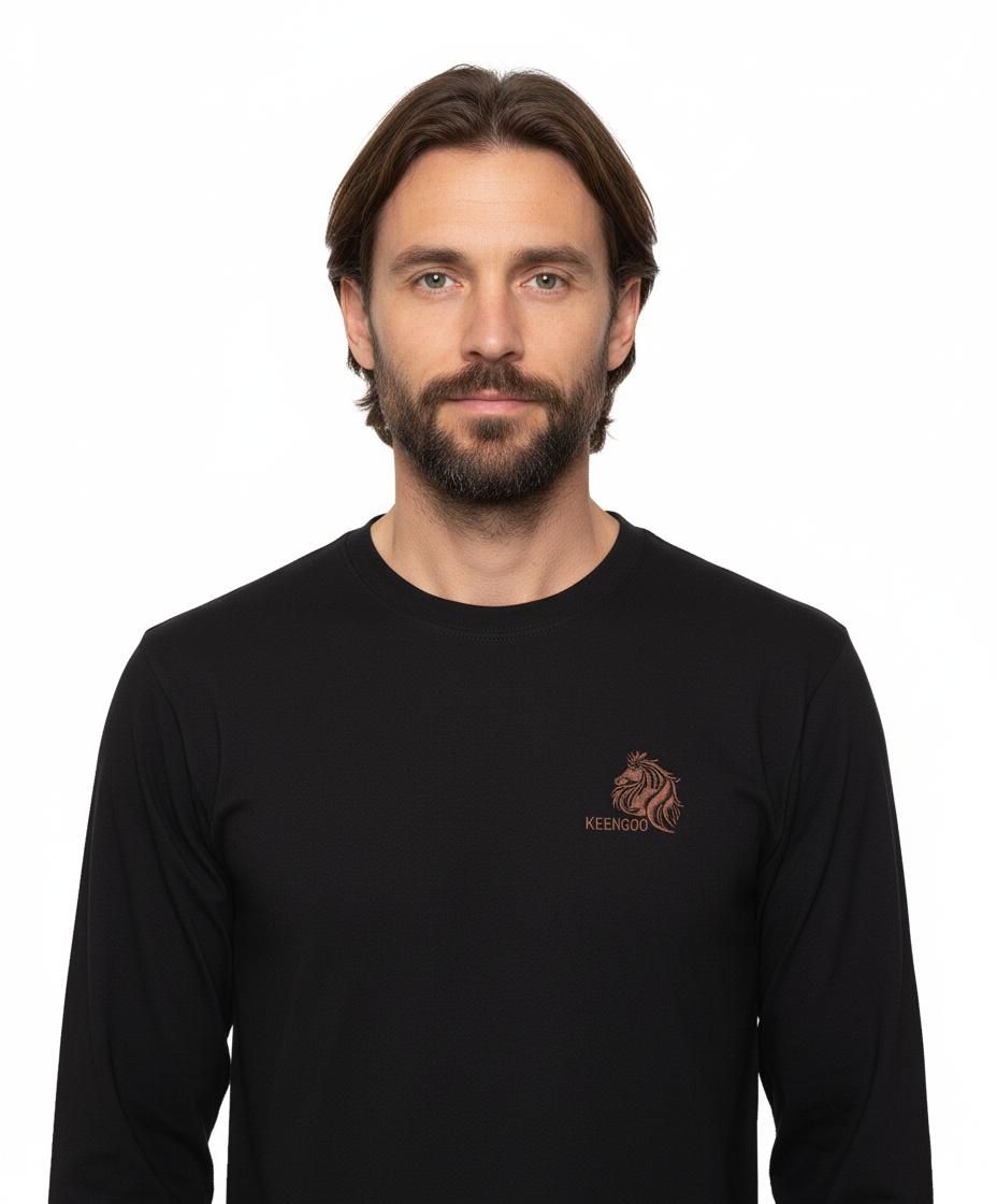 Keep it classic and comfortable with this full-sleeve black T-shirt for men, made from 100%