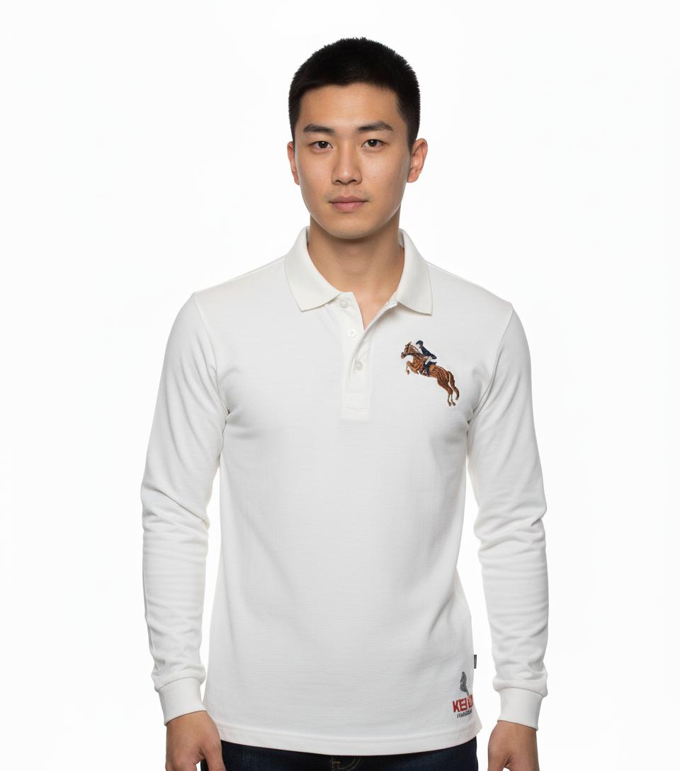 Elevate your casual wardrobe with this full-sleeve men’s polo shirt in snow white colour,